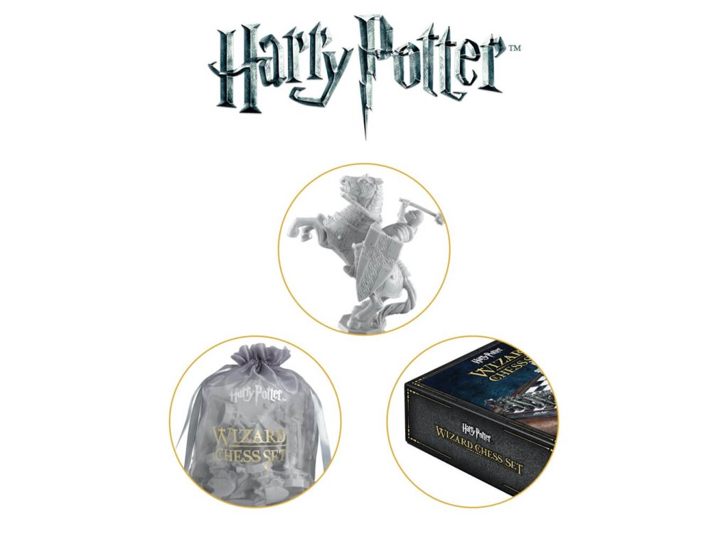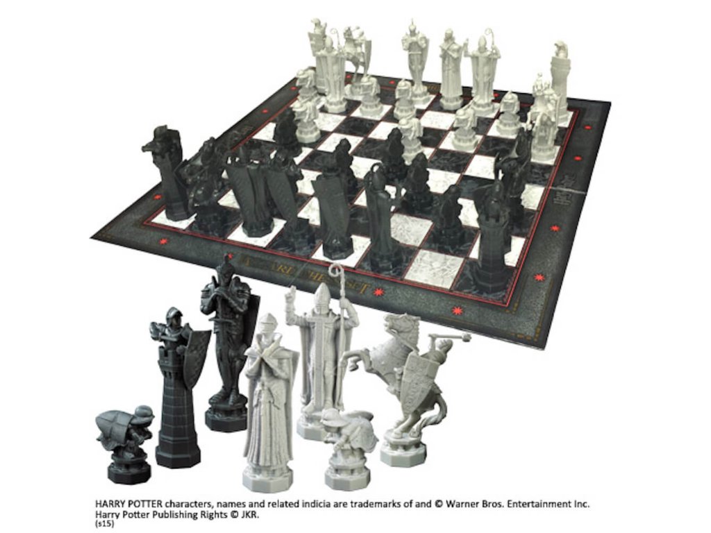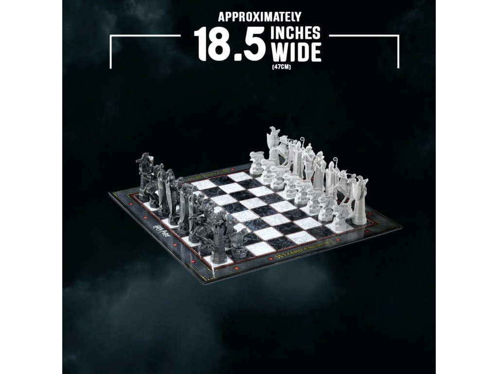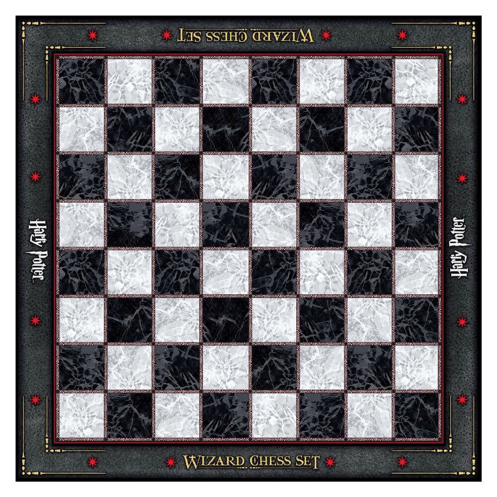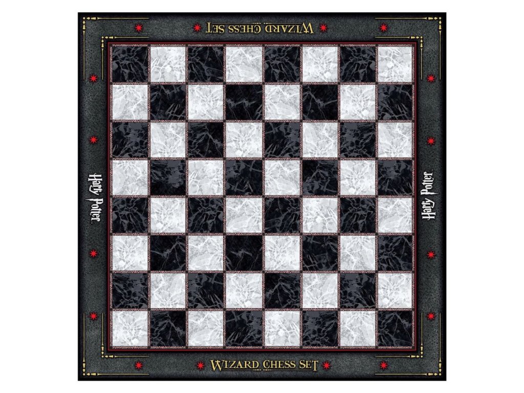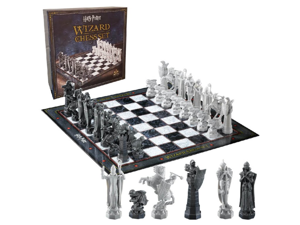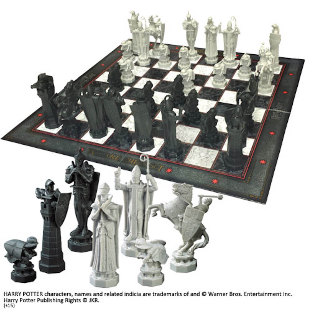 Kouzelnické šachy Harry Potter od The Noble Collection jsou věrnou replikou šachů z filmu Harry Potter a Kámen mudrců. Sada obsahuje 32 resinových figurek (výška 5-11,5 cm), hrací desku 47 x 47 cm a dva sáčky na figurky. Plně hratelná šachová sada s oficiální licencí Warner Bros.