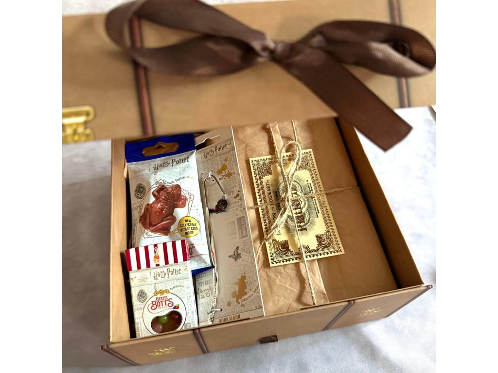 - Součástí je lampička na čtení, lístek na Bradavický express, záložka, čokoládová žabka, Bertíkovy fazolky 1000x jinak a originální Bradavický kufřík s mašlí