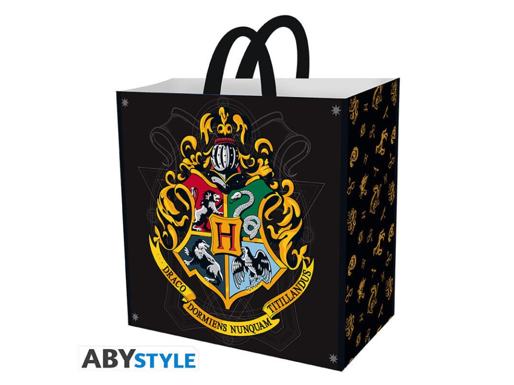 Dejte najevo svou lásku k čarům a kouzlům i při každodenních nákupech s Harry Potter nákupní taškou s erbem Bradavic. Tato praktická a odolná taška z kvalitního polypropylenu má rozměry 40 × 40 cm a je ideální pro každodenní použití – od rychlého nákupu v supermarketu až po cesty do školy či práce. Stylový design s erbem čtyř kolejí udělá radost každému fanouškovi kouzelnického světa J. K. Rowlingové.