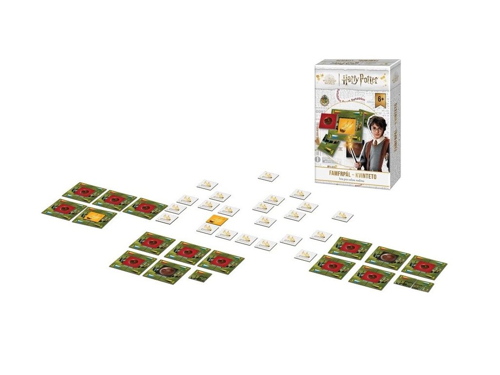 Hráči střídavě sbírají kartičky s cílem vytvořit co nejvíce kvintet – kombinací čtyř částí hřiště a jedné speciální kartičky. Camrály, Potlouky a Zlatonky přinášejí odlišnou bodovou hodnotu, takže výběr správných karet je klíčem k úspěchu. Herní partie trvá 25–35 minut a je ideální pro 2–5 hráčů, kteří se chtějí ponořit do atmosféry nejoblíbenějšího kouzelnického sportu.