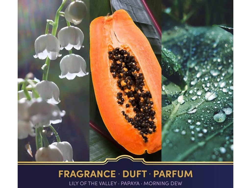 A fresh scent with a magical lightness. Bright top notes of lemon and orange bring energy and clarity, then unfold into a floral heart with lavender, lily of the valley and soft blossoms.