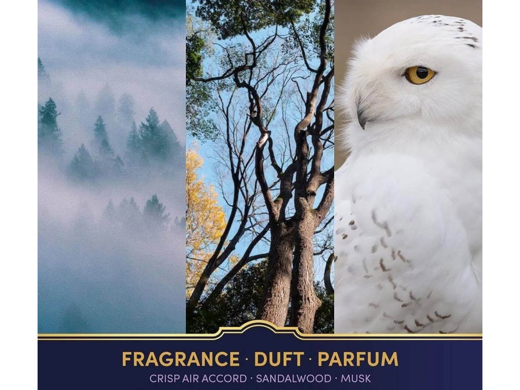 The base blends musk, sandalwood and orange, creating a balanced, calm and long-lasting scent.