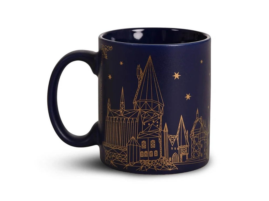 - Keramický hrnek s motivem Zlatonky a siluety Bradavic