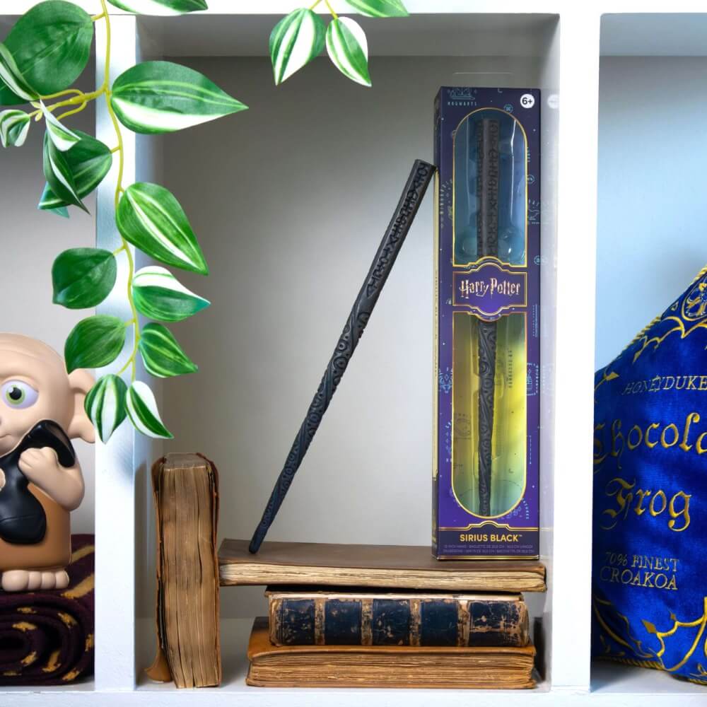 Nejprodávanější kategorií jsou bezesporu sběratelské hůlky Harry Potter. Každá hůlka je vyrobena z ručně malovaného resinu a dodávána v ikonické Ollivanderově krabičce se štítkem postavy — přesně tak, jak si ji Ollivander připravil pro svého zákazníka.