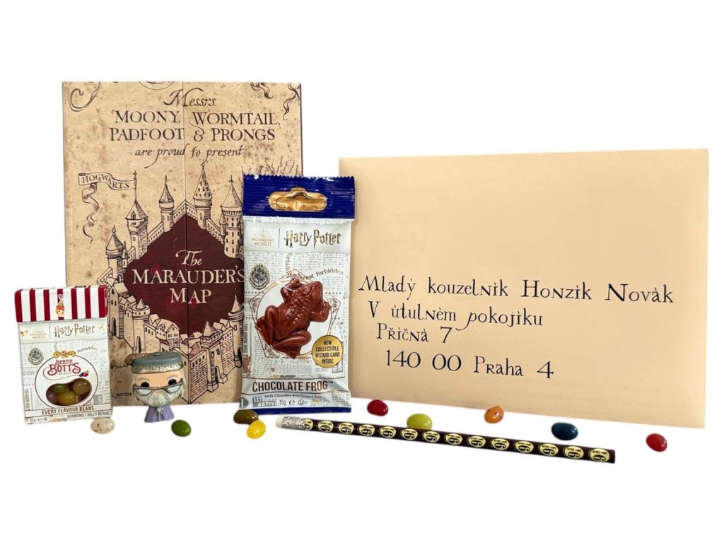 V balíčku najdete ikonický přijímací dopis z Bradavic, lahodnou čokoládovou žabku se sběratelskou kartičkou známého kouzelníka, zábavné Bertíkovy fazolky tisíckrát jinak, stylový poznámkový blok s motivem Pobertova plánku a tužku s motivem nástupiště 9 a 3/4. Každý z těchto produktů má své kouzlo a dohromady tvoří dokonalou kombinaci pro návrat do školy ve velkém stylu.