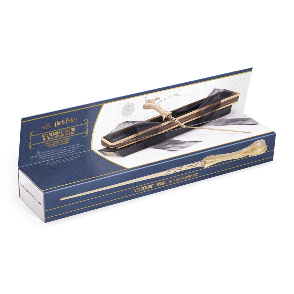 Balení obsahuje sběratelskou repliku hůlky lorda Voldemorta a repliku originálního Ollivanderova sběratelského boxu s polstrováním a sametovým lemem. Produkt je připraven přímo k darování nebo vystavení bez dalšího balení.