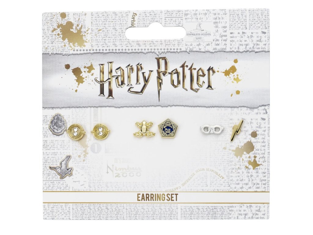 Klíčové vlastnosti Harry Potter náušnic - Obraceč času, čokoládová žabka, blesk a brýle